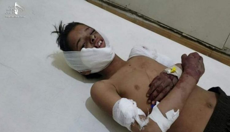 مصدر أمني أكد إصابة الطفل حسين علي حسان البالغ من العمر عشر سنوات نتيجة انفجار قنبلة من مخلفات العدوان في مديرية الصفراء في صعدة.. مضيفا أنه تم إسعاف الطفل إلى المستشفى الجمهوري بعاصمة المحافظة حيث توزعت جراحاته في الرأس والكتف والأيدي وإحدى قدميه.