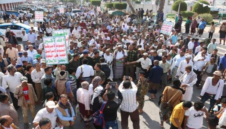 مظاهرة حاشدة في الحديدة تنديدا بتصعيد وجرائم العدوان