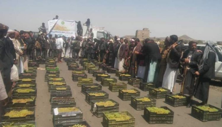 وخلال الوقفة قدم أبناء منطقة الحيوف في بني حشيش القافلة الثالثة من الأعناب رفداً للمجاهدين في الجبهات.
