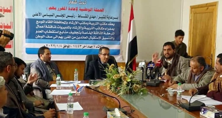 وفي اللقاء، أكد الرويشان أهمية إنجاح مهام اللجنة المركزية واللجان الفرعية، تنفيذا لتوجيهات القيادة الثورية والمجلس السياسي الأعلى، لضمان تحقيق الأهداف المرجوة في عودة المغرر بهم إلى قراهم وأهاليهم.