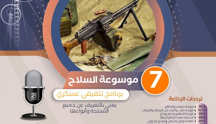 برنامج ( موسوعة السلاح ) البرنامج السابع في الباقة البرامجية لاذاعة 21 سبتمبر برنامج اسبوعي عسكري يختص بالتعريف بالاسلحة وانواعها وكيفيه استخدامها اعداد : اكرم جحاف تقديم : حسين غانم يأتيكم يوم الاثنين في تمام الساعة 8:30 صباحا ويعاد 8:00 مساء و 1:00 بعد منتصف الليل فيسبوك : fb.me/FM21sept تلجرام : t.me/FM21sept تويتر : twitter.com/FM21sept مشاركة FacebookTwitterGoogle+LinkedinTumblrTelegramWhatsAppEmailPrint