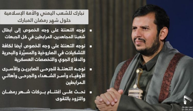 السيد عبدالملك الحوثي يبارك للشعب اليمني والأمة الإسلامية حلول شهر رمضان المبارك