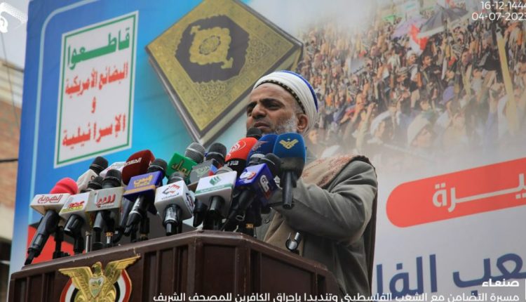 وقال مفتي الديار في كلمة له، اليوم الثلاثاء خلال المسيرة الجماهيرية الحاشدة في العاصمة صنعاء للتضامن مع الشعب الفلسطيني وللتنديد بإحراق القرآن الكريم في السويد: عدونا لن يرهبنا ما دمنا متفرقين ومشتتين، لكن إذا مسكنا السلاح وكتاب الله فلن يجرؤ أحد على تدنيس مقدساتنا .. مضيفا أن الأعداء عملوا على تفريق المسلمين لعقود طويلة، وعلينا أن نخيب ظنهم وأن نجمع كلمتنا ونوحد صفنا.