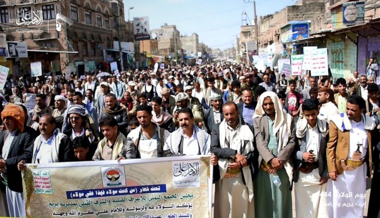 نُظمت في مدينة إب ، فعالية مركزية وجماهيرية حاشدة، ابتهاجا بذكرى يوم ولاية أمير المؤمنين علي بن أبي طالب عليه السلام، تحت شعار “من كنت مولاه فهذا علي مولاه”.