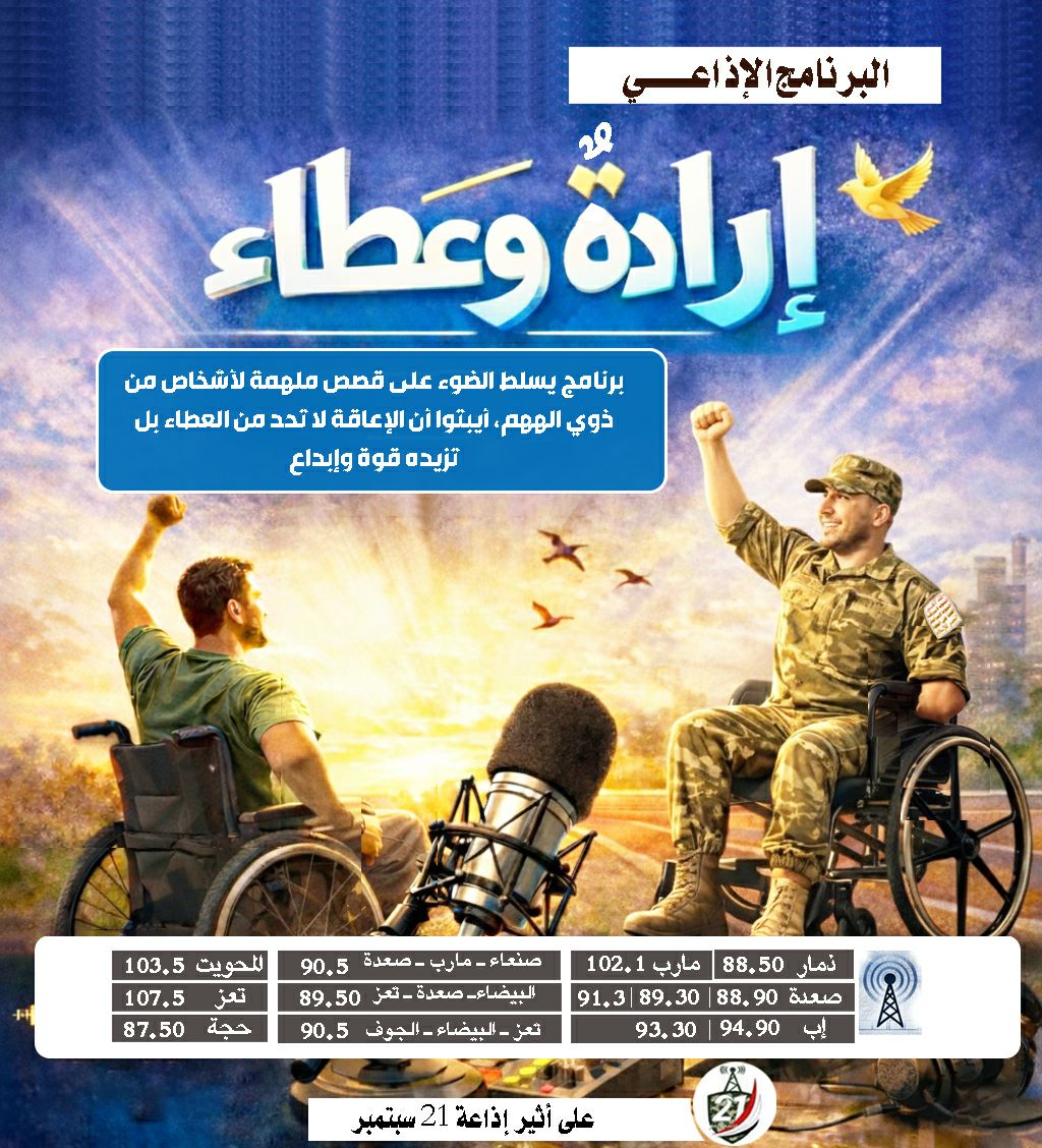 برنامج إرادة وعطاء، يأخذكم في رحلة إذاعية قصيرة ، نستكشف خلالها عالماً مليئاً بالتحدي والإصرار.