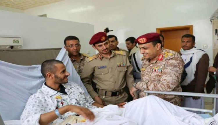 قيادات وزارتي الدفاع والداخلية يزورون جرحى الجيش واللجان بمناسبة عيد الأضحى المبارك
