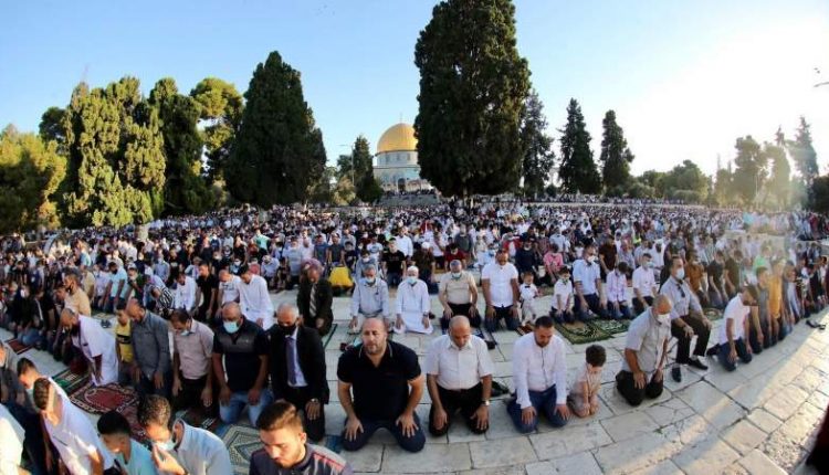 أدى الفلسطينيون في مدينة القدس المحتلة، صباح اليوم الجمعة، صلاة عيد الأضحى المبارك، وسط إجراءات وقائية؛ متعددة ومتفاوتة من فيروس كورونا.