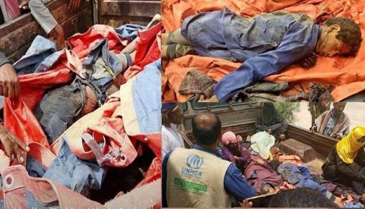 وأفادت مصادر محلية في الجوف أن طيران العدوان ارتكب مجزرة بحق أكثر من عشرين طفل وامرأة من قبيلة المعاطرة بمديرية خب والشعف.