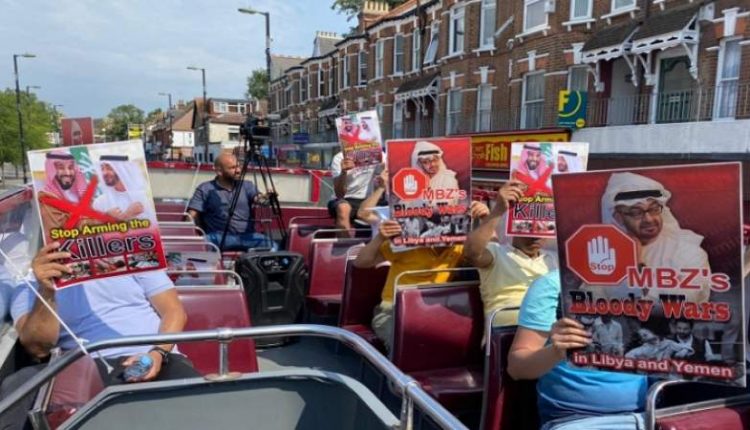 شارك ناشطون وحقوقيون في تظاهرة على متن حافلة جابت بعض شوارع العاصمة البريطانية باتجاه السفارة السعودية طالبت بوقف الحرب على اليمن، ووقف صفقات الأسلحة مع السعودية والإمارات.