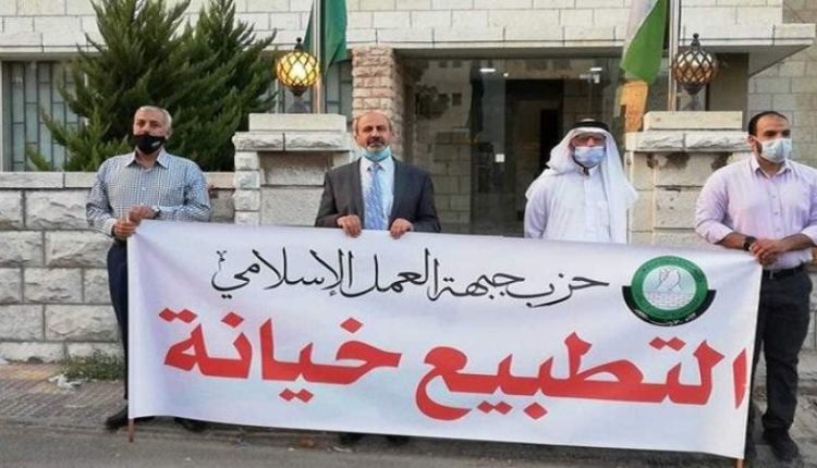 وقال الأمين العام للحزب مراد العضايلة في كلمة له، إن الشعب الأردني يؤكد رفضه لما تقوم به بعض الأنظمة العربية من هرولة للتطبيع مع العدو الصهيوني، والتحالف مع المشروع الصهيوني ضد القضية الفلسطينية، معتبرا أن التطبيع يمثل حالة سقوط للنظام الرسمي العربي، الذي لا يعبر عن ضمير الشعوب.