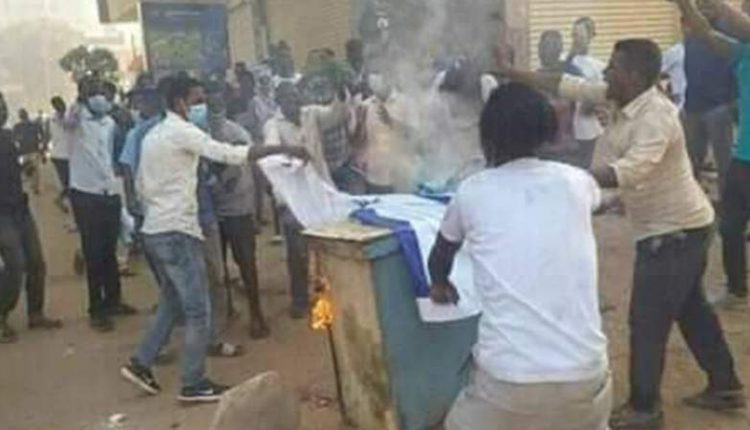 وقال شهود عيان إن “عملية حرق الأعلام الإسرائيلية جرت في المنطقة المتاخمة لحي الصحافة جنوب الخرطوم على خلفية هتافات مناوئة للتطبيع وضد من يسعون لتبريره في الأوساط الشعبية والسياسية“.