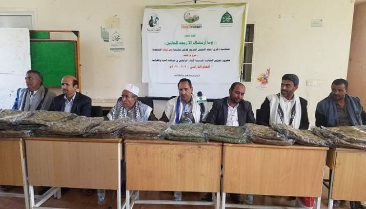 دشنت مؤسسة يمن ثبات التنموية فرع محافظة حجة اليوم مشروع توزيع الحقيبة المدرسية لأبناء المرابطين في الجبهات، بمناسبة ذكرى المولد النبوي.