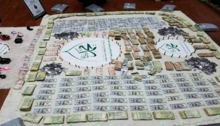 واحتوت القافلة على عدد من قطع الذهب ومبالغ مالية منها 30 ألف سعودي و5950 دولارًا، وأكثر من 6 مليون ريال يمني.