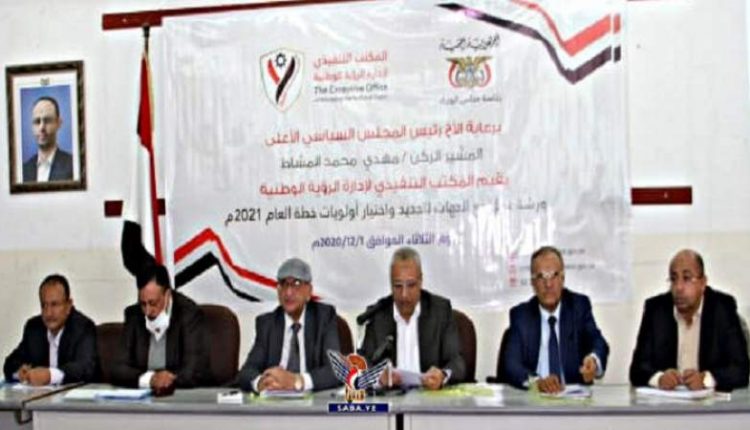 عٌقدت بصنعاء اليوم ورشة عمل للجهات الحكومية لتحديد واختيار أولويات خطة العام المقبل ٢٠٢١م، نظمها المكتب التنفيذي لإدارة الرؤية الوطنية.